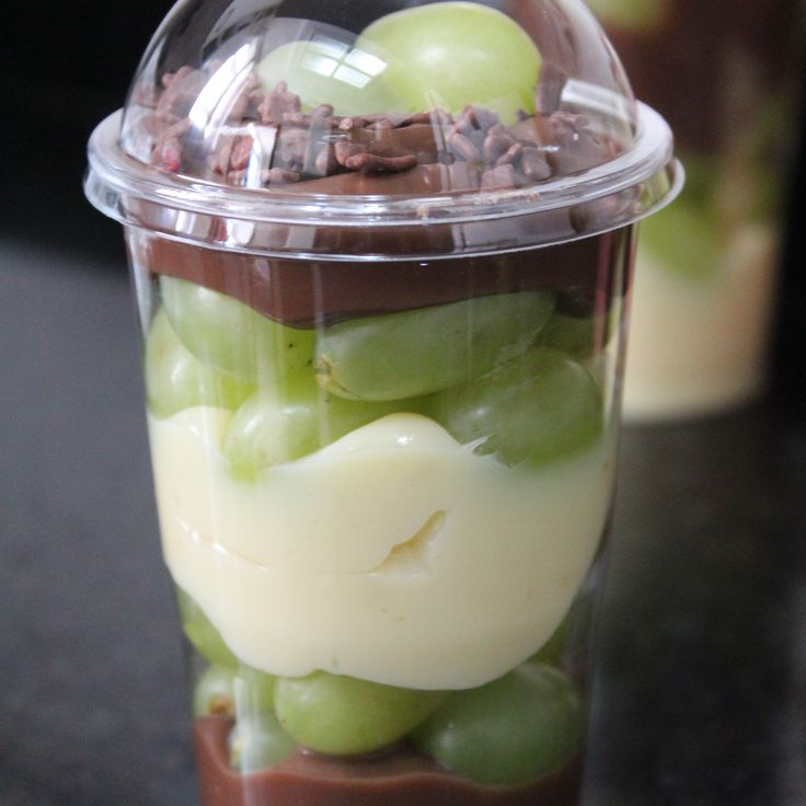 copo da felicidade de uva 200ml,com a base de ninho uva e chocolate por cima.