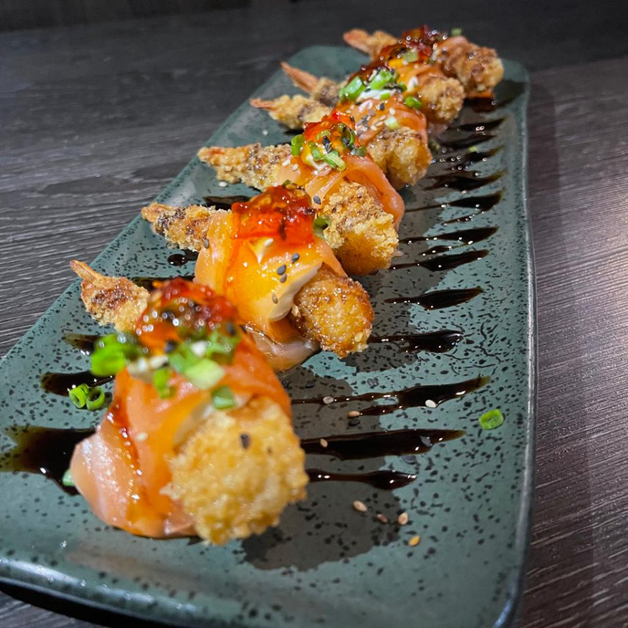 Salmao, cream cheese , camarao empanado e geleia de pimenta. 5 unidades