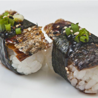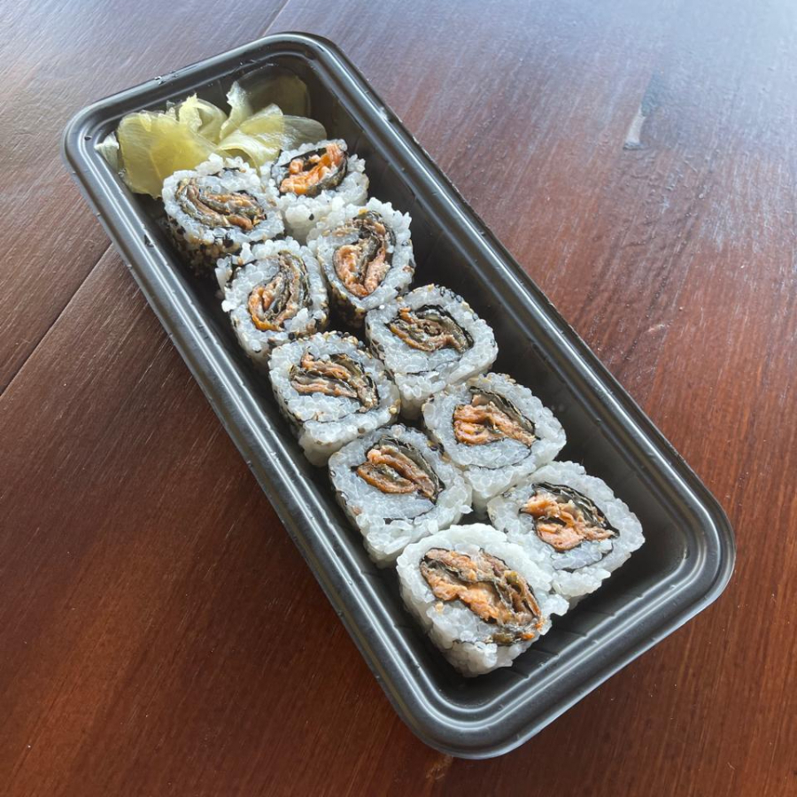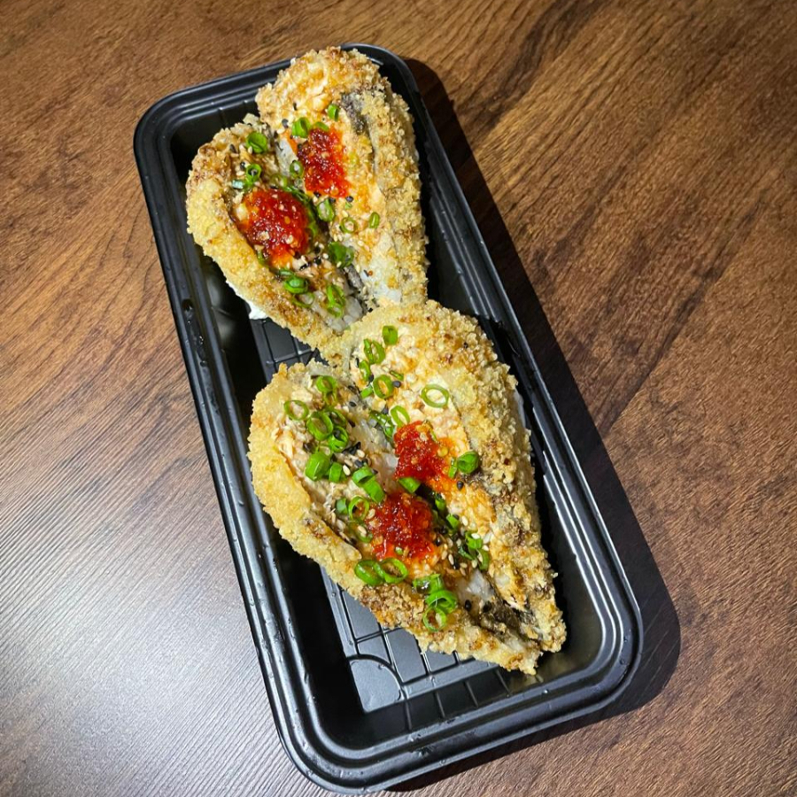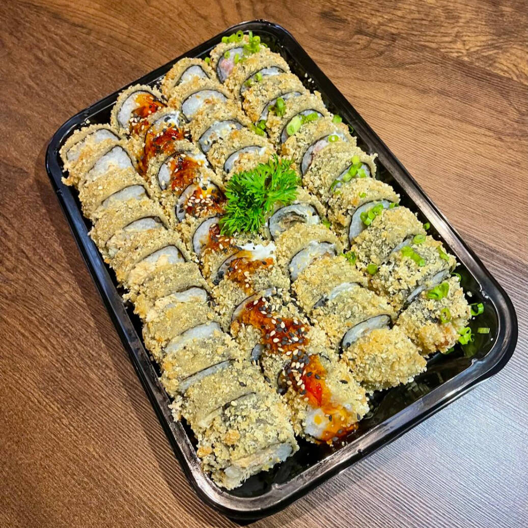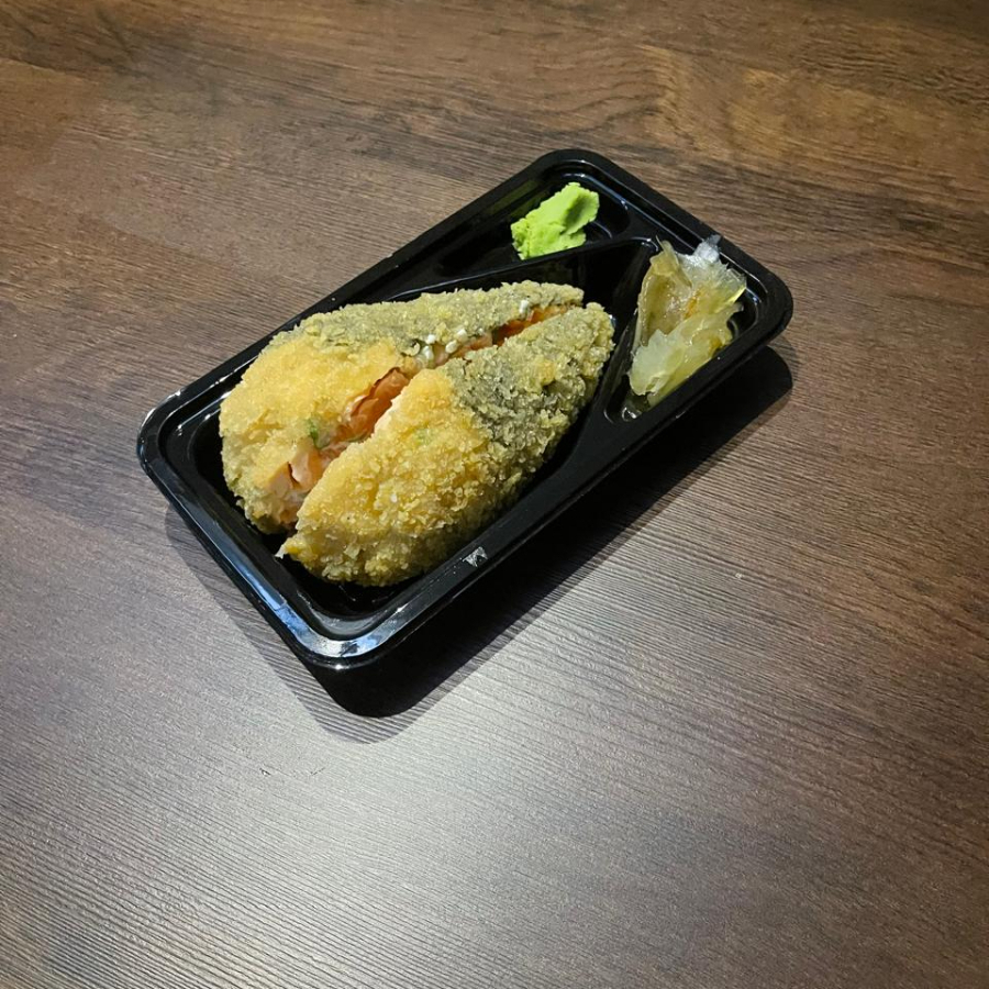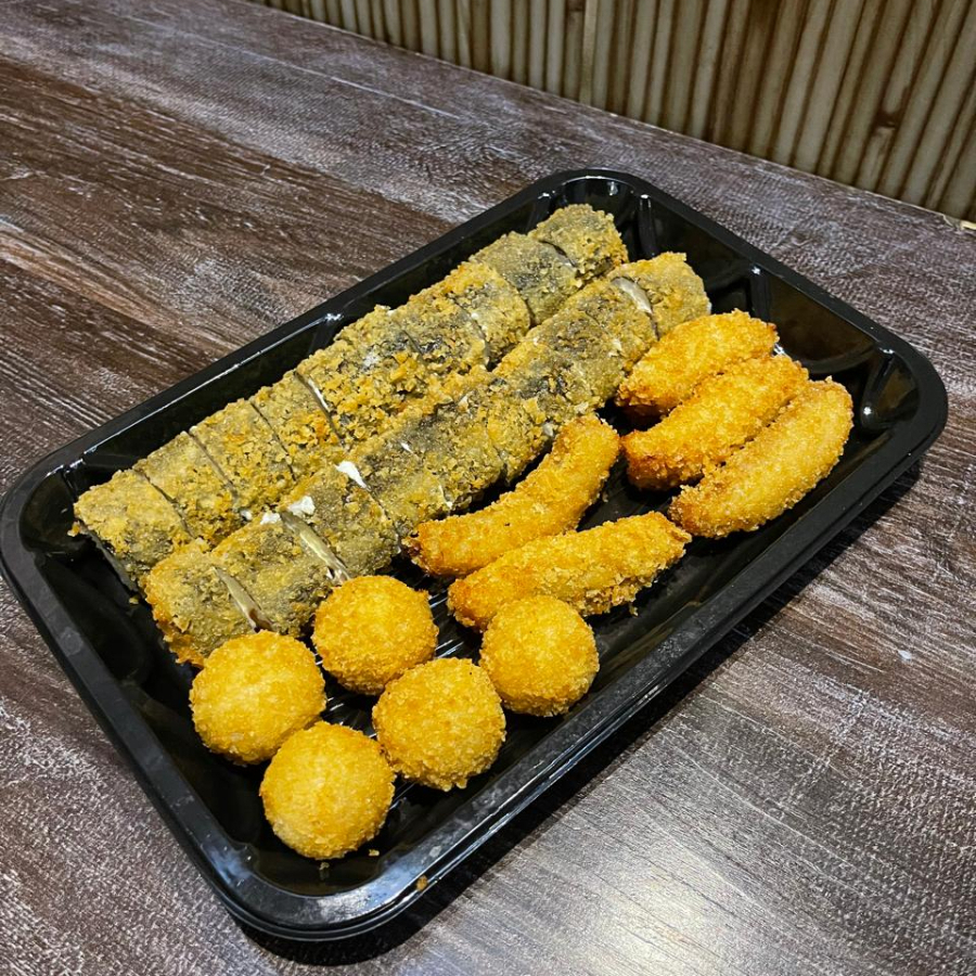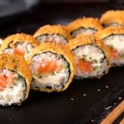 ALGA, ARROZ, PATE DE SALMAO E CREAM CHEESE. EMPANADO E FRITO, NAO ACOMPANHA OS MOLHOS ( VENDIDOS SEPARADAMENTE )