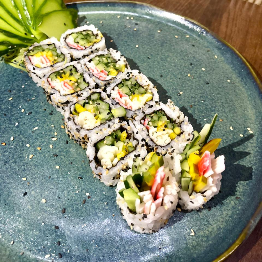 Arroz por fora , alga, kani, manga e pepino. 10 unidades