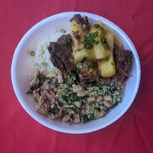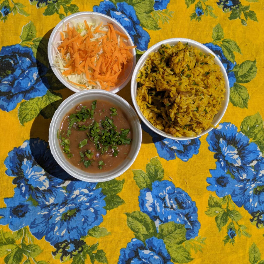 Arroz, Feijão Tropeiro, Carne Com Mandioca