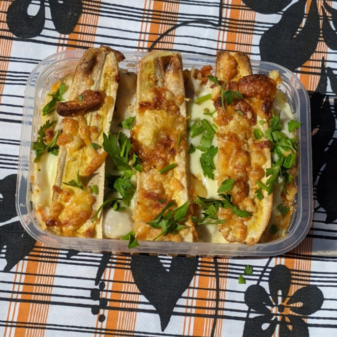 Arroz, Carne De sol, Bacon, Linguiça De Porco, Tomate, Molho De tomate, Queijo, Banana Assada