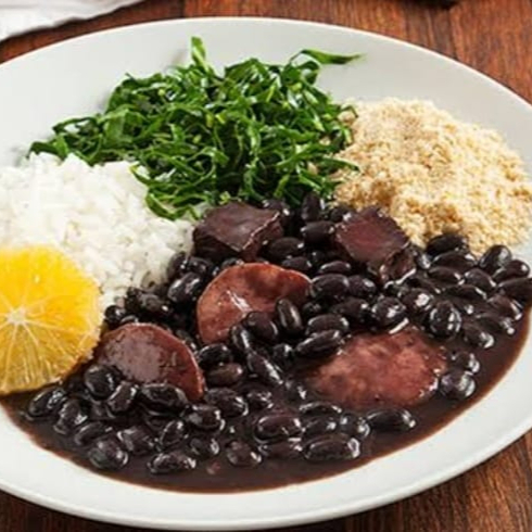 Arroz, Feijoada, Farofa, Torresmo, Salada