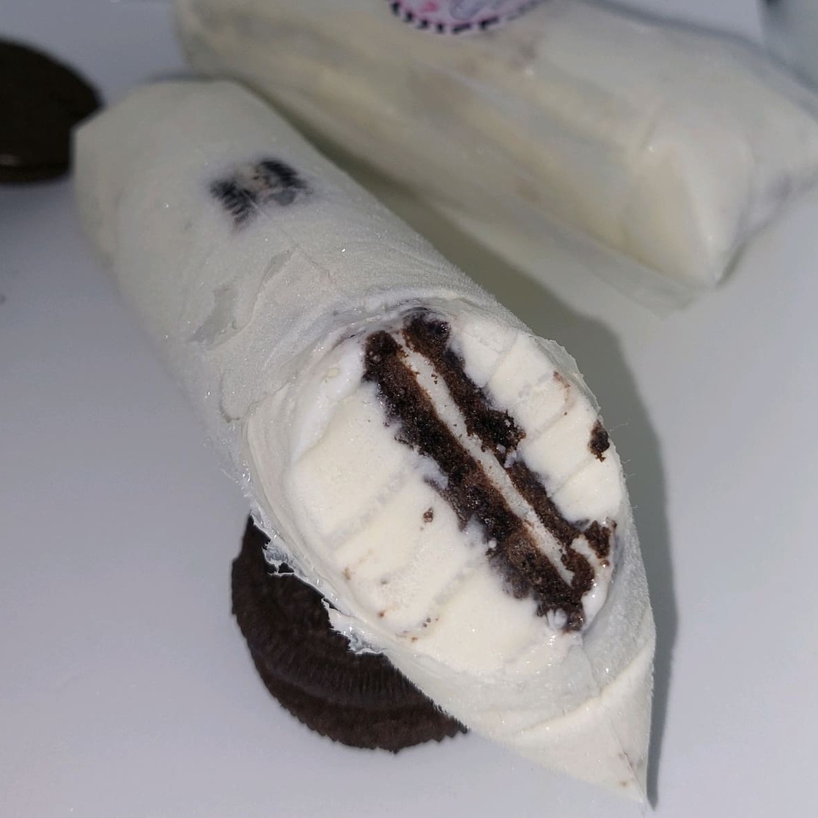 Base de leite Ninho com pedaços de bolacha Oreo dentro do saquinho.