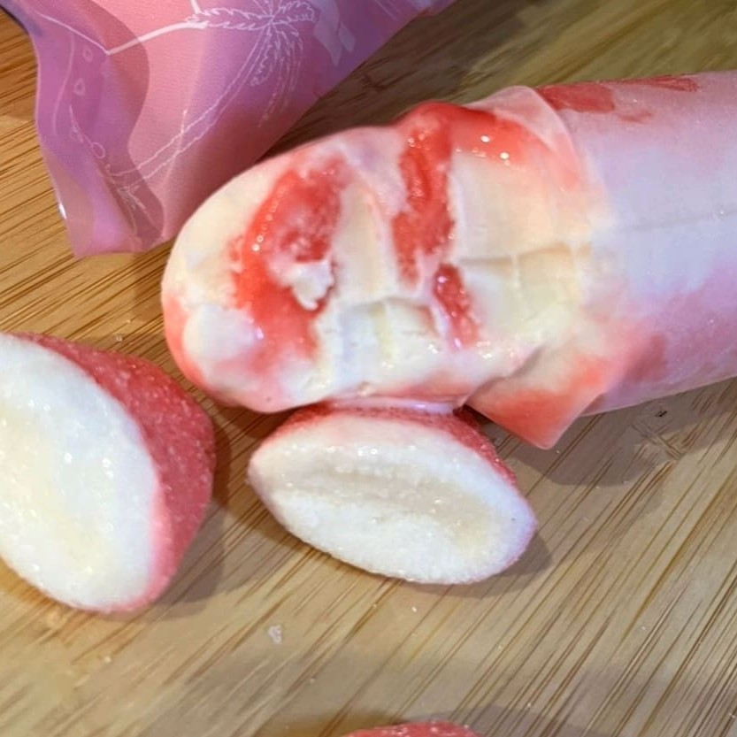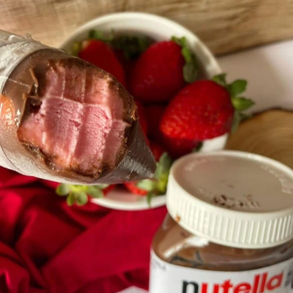 Nosso delicioso geladinho de morantella base de morango com pedacinhos de morango com a nossa autêntica nutella
