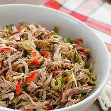 Lagarto desfiado, pimentões vermelho, amarelo e verde, azeitonas fatiadas, uva passas, cebola, vinho tinto e azeite de oliva libanês