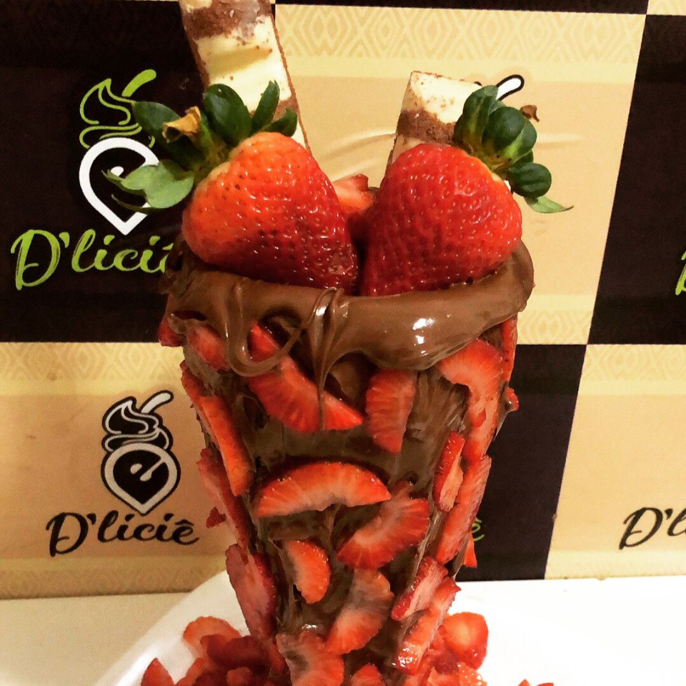 Açaí, recheio de morango, nutella, leite em pó, amendoim e morango