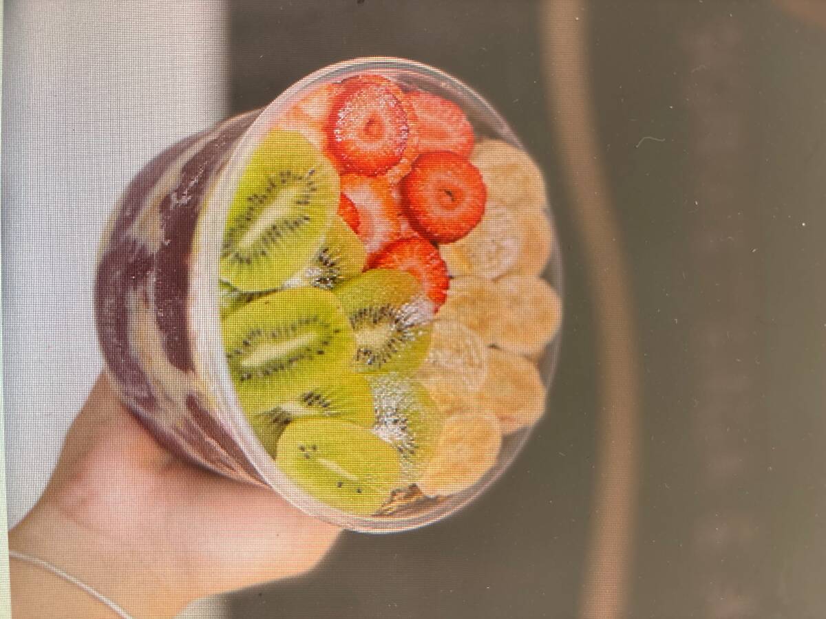 Açaí, creme de ovomaltine, morango, ovomaltine, leite em pó