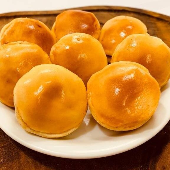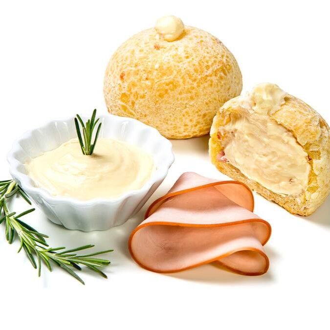 Delicioso pão de queijo recheado com creme especial da casa e peito de peru. Porção com 4 unidades de pão de queiro recheado.
