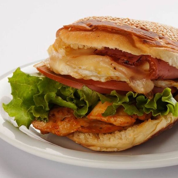 Um delicioso misto super reforçado preparado com pão francês fresco, 3 fatias de queijo, 3 fatias de presunto e 1 ovo frito. Uma ótima opção para um café da manhã reforçado!