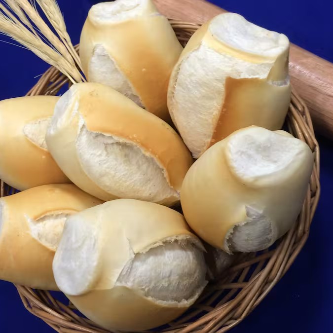 Delicioso pão francês tradicional com massa crocante por fora e macia por dentro, composto por 4 unidades de pão francês.