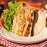 Unidade fatia mussarela,2 fatia de presunto,2 ovos,2 fatia de bacon,2 salsicha, 1 hambúrguer ,alface e tomate