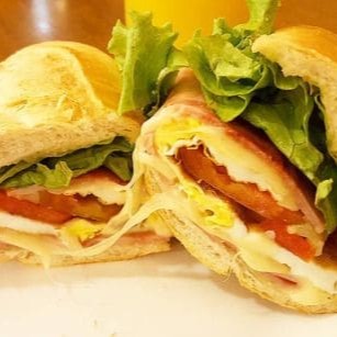"""Delicioso sanduíche no pão francês com presunto suculento, muçarela derretida, ovo grelhado, alface crocante e tomate fresco, garantindo sabor e qualidade em cada mordida."""