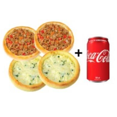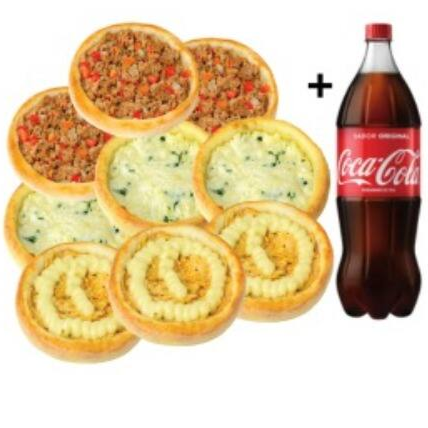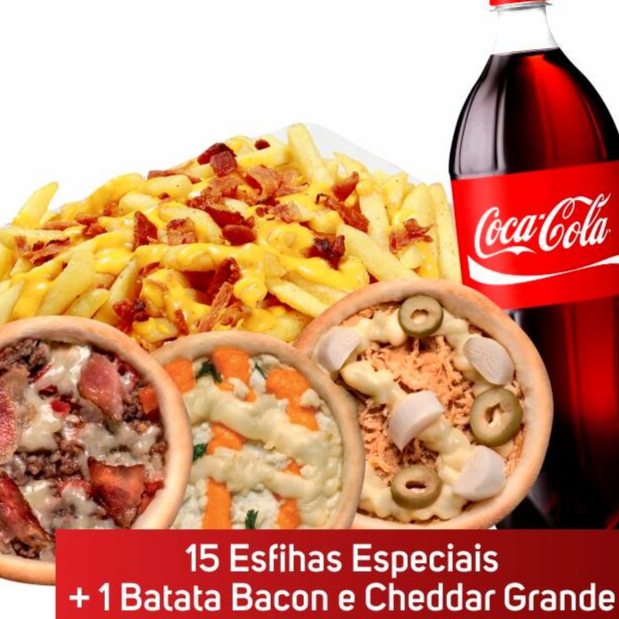 10 esfihas de Carne+5 esfihas de Frango+5 esfihas de Queijo+1 Coca-Cola 1,5 litros (não acrescentamos ou retiramos itens do recheio)