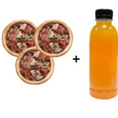 3 Carne Bacon E Queijo + 1 Suco De Laranja 500ml
