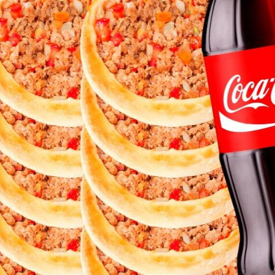 Pensa Num Trem Bão = 10 Esfihas de Carne e 1 Coca-Cola 1,5 litros ( Massa Fresca, Carne, Tomate, Cebola E Limão ) (não acrescentamos ou retiramos itens do recheio)