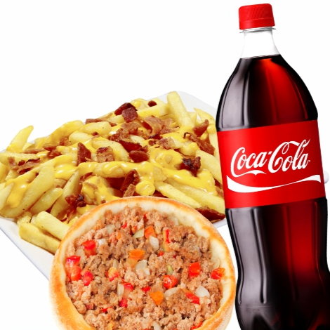 2 ESFIHAS DE CARNE + 1 BATATA BACON E CHEDDAR DE 200g + 1 COCA COLA 600ml