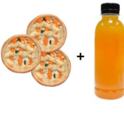 3 Esfihas De Quatro Queijos + 1 Suco De Laranja (Só O Caldo Puro) 500ml