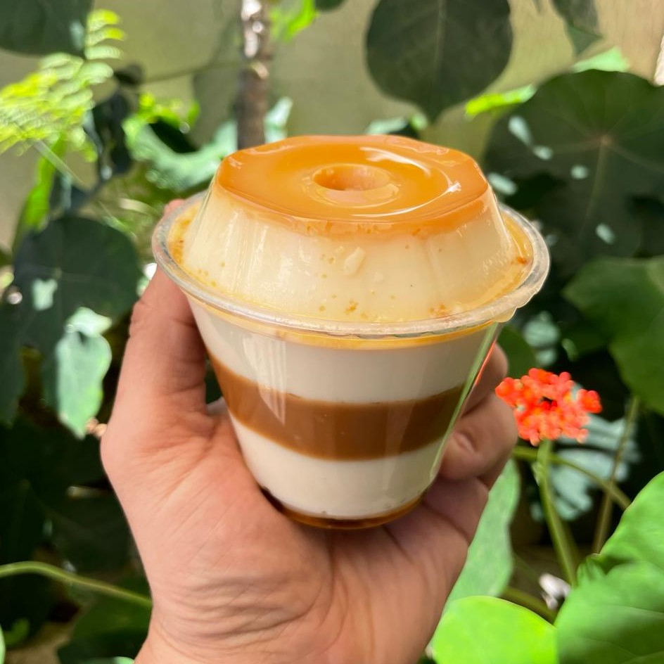 Delicia Copudim foi desenvolvida para os amantes de Pudim e caramelo, ela possui um pudim na parte de cima, creme belga, calda caramelo e creme caramelo, e castanha de caju.