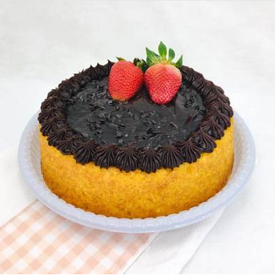 Bolo Piscina de Cenoura com cobertura de Brigadeiro Gourmet, enfeitada com Morango.