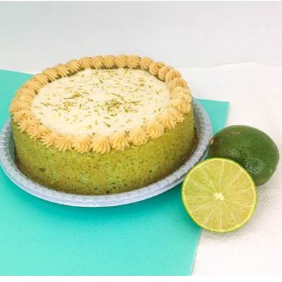 Bolo Piscina de Limão, massa saborizada de limão, com cobertura de mousse de limão.
