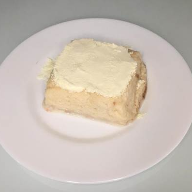 Bolo Branco, tem recheio de abacaxi e leite Ninho, calda de leite Ninho e creme de leite ninho também.