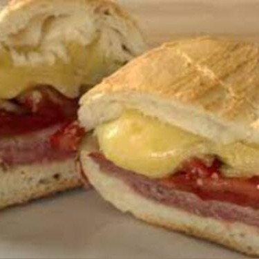 Pão, presunto, muçarela e tomate