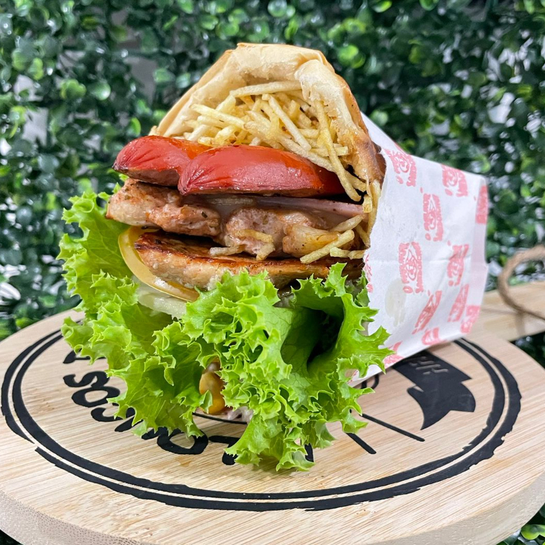 muçarela, tomato, alface, abacaxi, milho o batata palha
