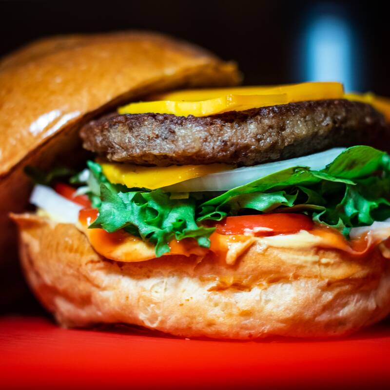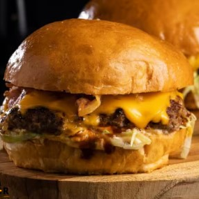 Burguer de 100g com Cheddar Derretido no Pão Brioche.