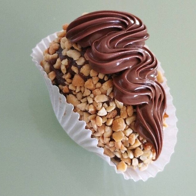 Uma combinação irresistível: morango fresco envolto em brigadeiro cremoso de chocolate, coberto com crocante de castanhas e finalizado com um toque generoso de Nutella. Um luxo em cada mordida!