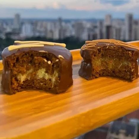 Delicioso pão de mel com recheio brigadeiro cobertura meio amargo.
