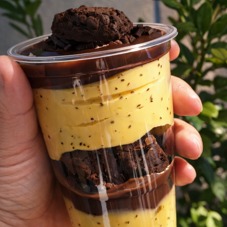 Brigadeiro de Chocolate 50 % com Brigadeiro de Maracujá e pedaços de Brownie