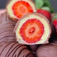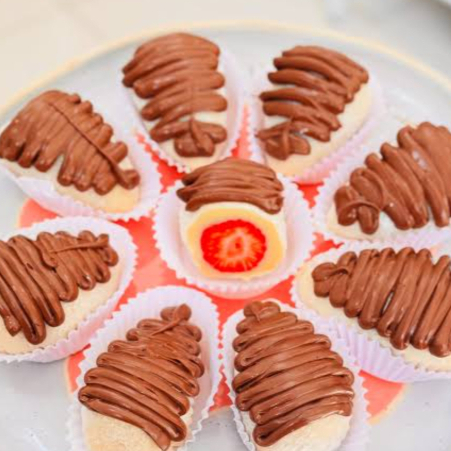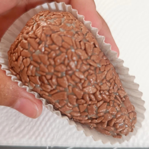 Brigadeiro de leite ninho com morango enrrolado no granulado de chocolate