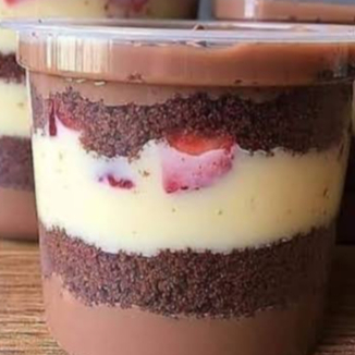 Brigadeiro de leite ninho com pedaços de morango e um belo bolo de chocolate