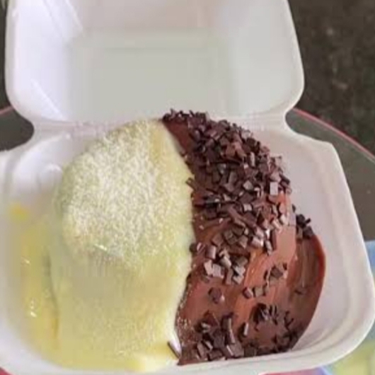 Brigadeiro branco,com pedaços de brownie e brigadeiro de chocolate 50%