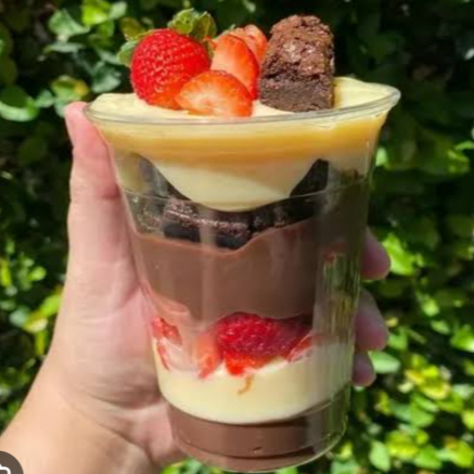 Brigadeiro de chocolate, Brigadeiro de leite Ninho com pedaços de Morangos e um delicioso Brownie