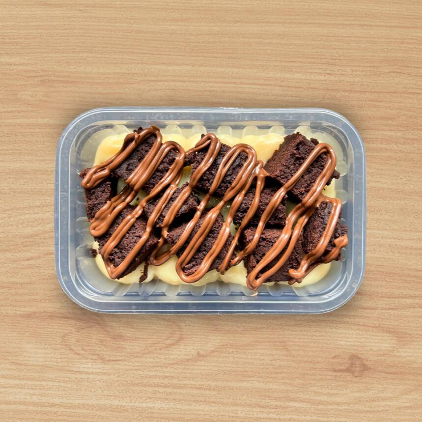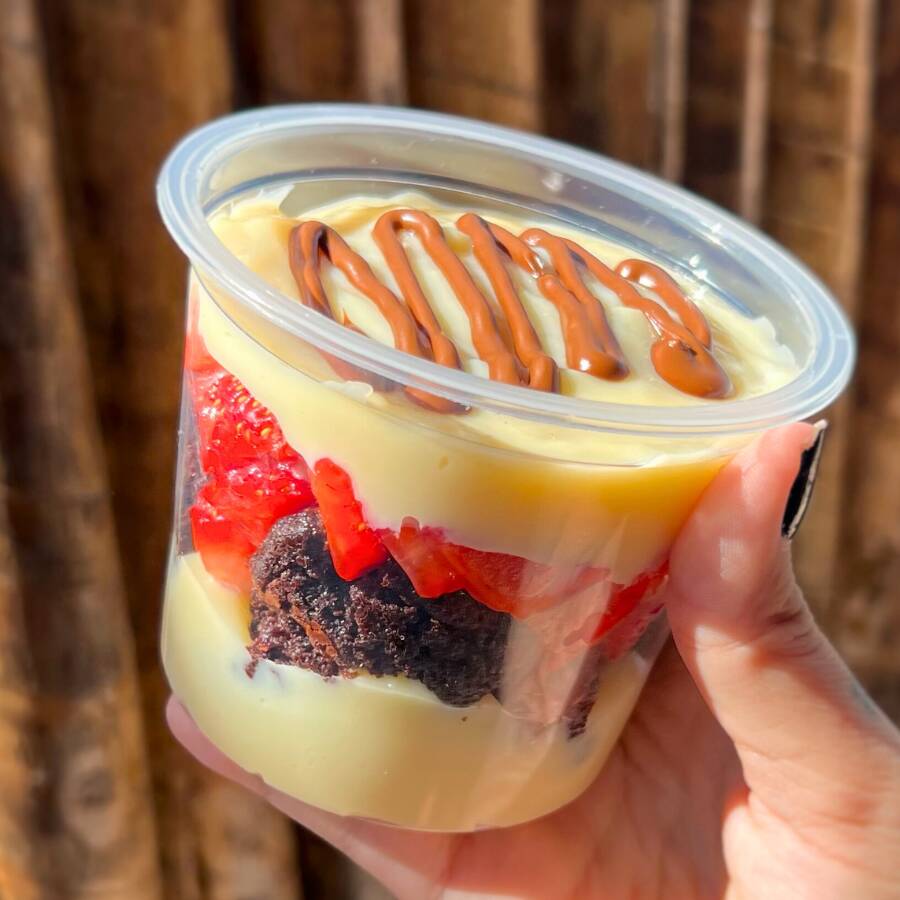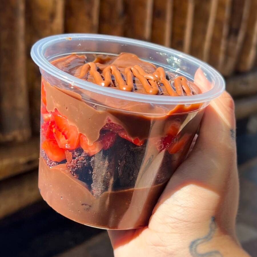 Uma sobremesa em camadas feita pra conquistar. Começa com uma base de brownie artesanal super chocolatudo, seguida por morangos frescos picados, depois vem uma camada cremosa de brigadeiro feito com chocolate ao leite nobre e, por cima, uma cobertura de Nutella. Rica, intensa e feita com ingredientes de verdade, essa tentação é perfeita pra quem ama um doce completo e inesquecível. 270g
