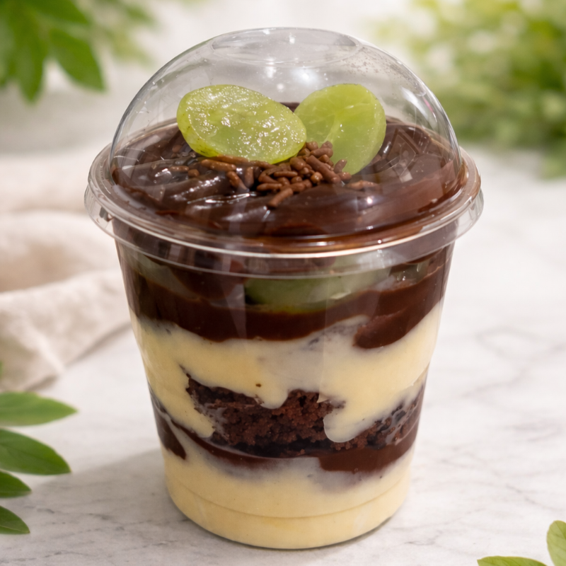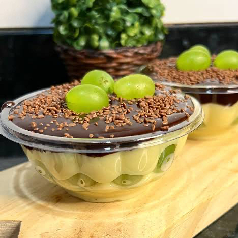 150ml ( ninho cremoso, uva verde fresca, recheio de chocolate meio amargo e brownie)