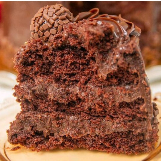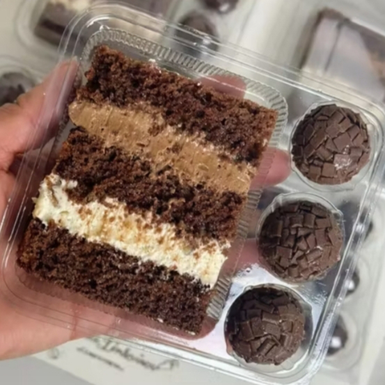Deliciosa fatia de bolo gelado com chocolate e prestígio bem molhadinho