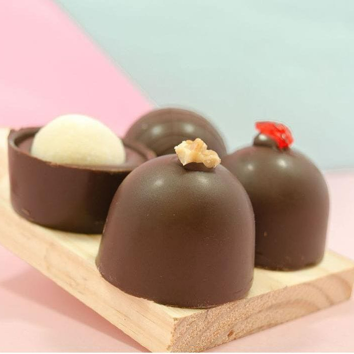 Caixinha contendo 4 trufas variadas.(nozes, ninho e nutella, cereja , ovomaltine, coco , brigadeiro , ninho , abacaxi )