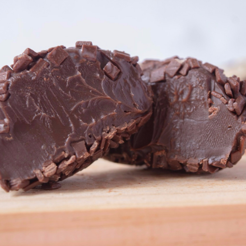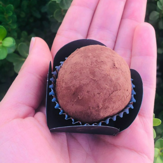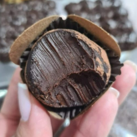 Deliciosa trufa meio amarga , com chocolate 50%.
