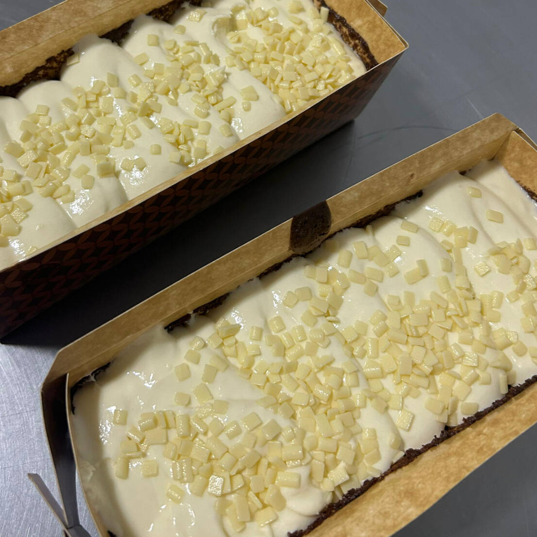 Delicioso bolo de chocolate , coberto com creme de ninho e granulé branco