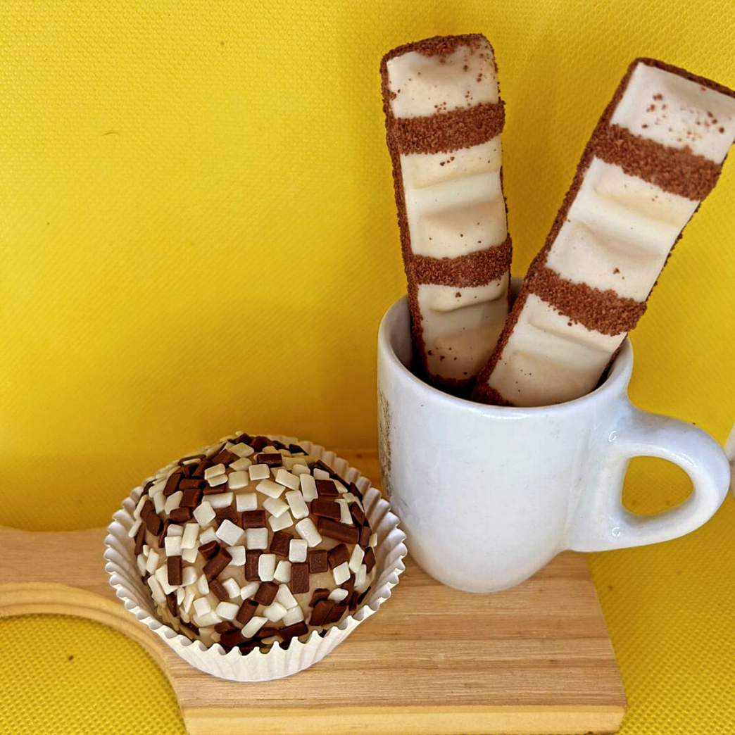 Delicioso bolo de chocolate , com brigadeiro de coco e brigadeiro tradicional , proporcionadno sabor incomparável .
