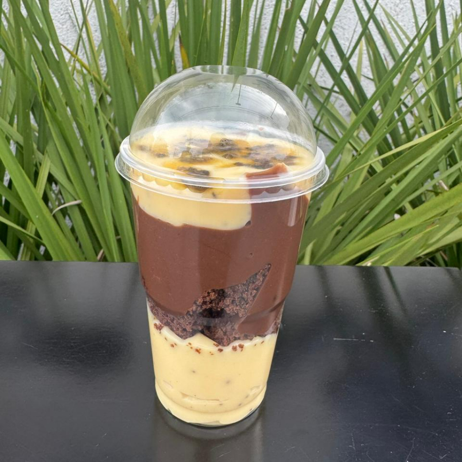 Deliciosas camadas de creme de maracujá , bolo fofinho, brigadeiros e geléia de maracujá