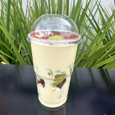 Três deliciosos copos da felicidade ,para você se apaixonar , nos sabores morango, uva e maracujá .