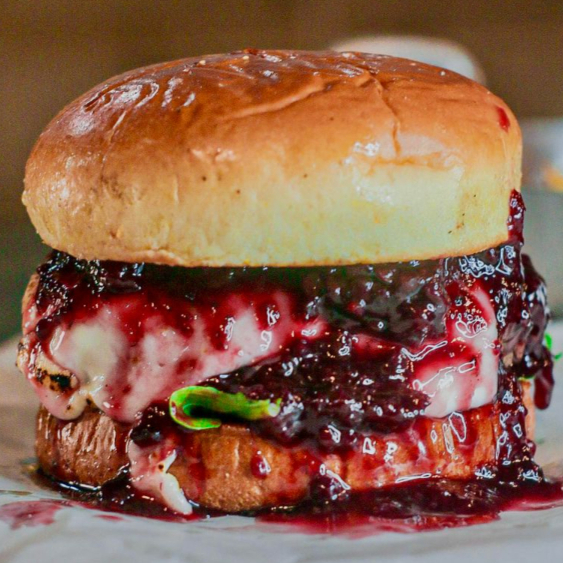 Pão brioche selado, hambúrguer bovino suculento de 200g, queijo canastra gratinado, rúcula fresca e exclusiva geleia artesanal de frutas vermelhas da casa.