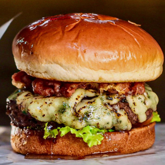 Pão brioche selado, hambúrguer bovino suculento de 200g, gorgonzola gratinado, crispy de presunto parma, um toque de mel, alface e tomates frescos.