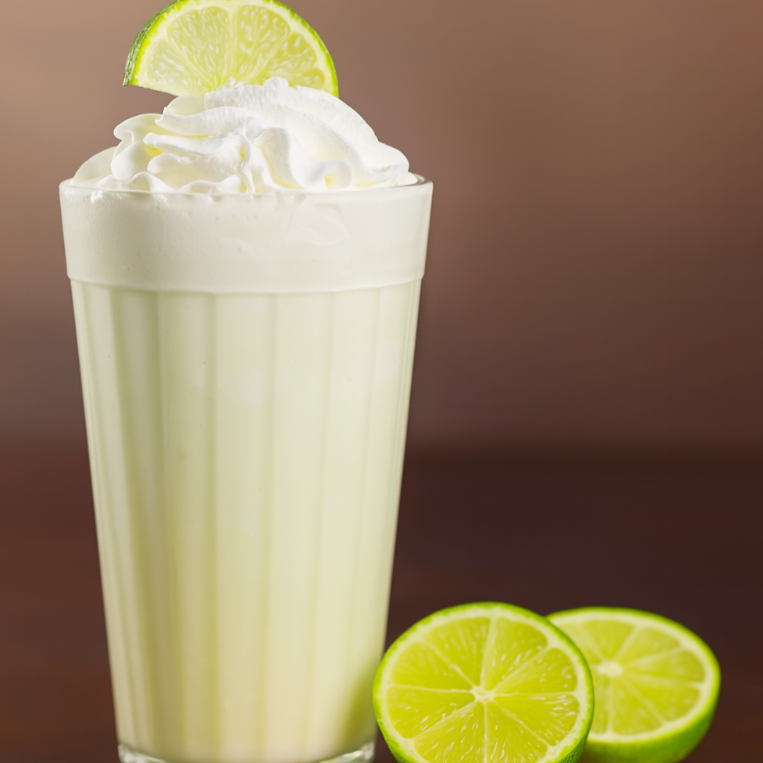 Milkshake com calda cremosa de limão com sorvete de Ninho e chantilly leve para finalizar.