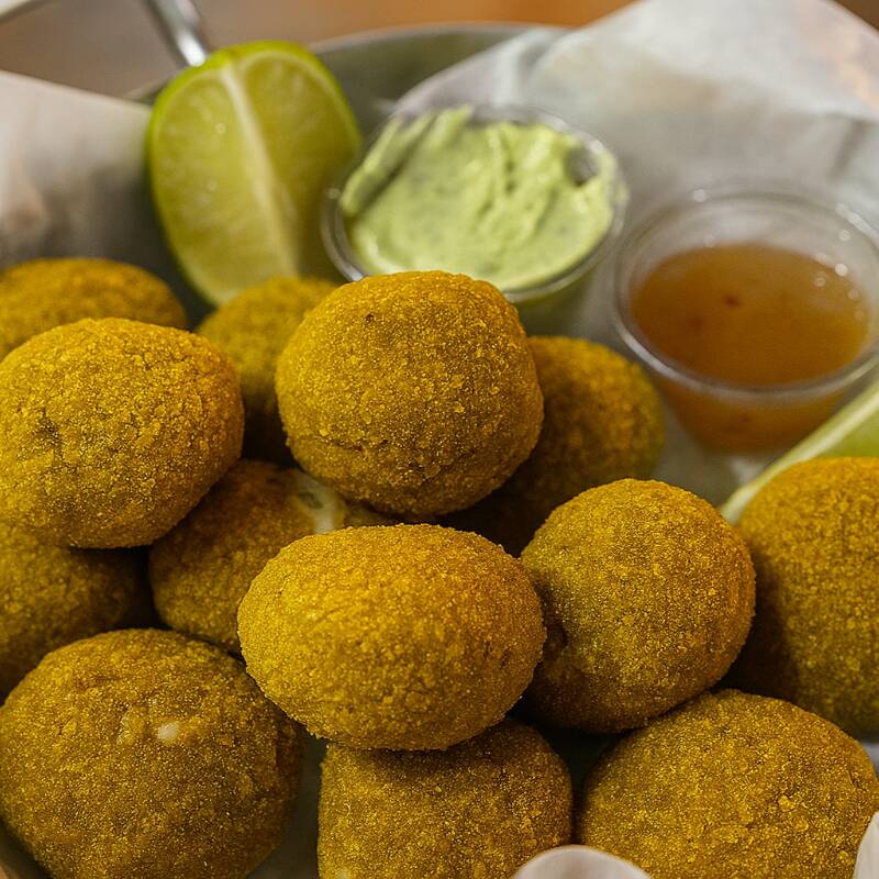 Delicioso aperitivo frito com queijo gouda derretido, casquinha crocante e interior cremoso. Acompanha 10 unidades.