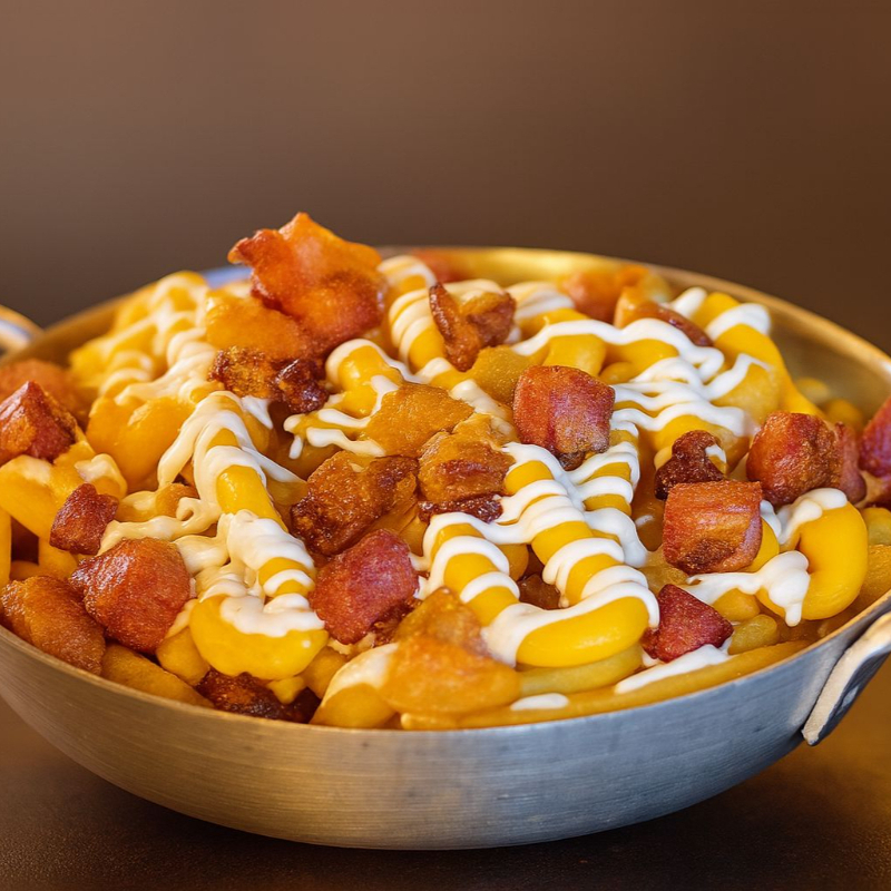 Batata palito crocante, servida com camadas de sour cream e cheddar cremoso, finalizada com bacon em cubos, 500g (in natura).
